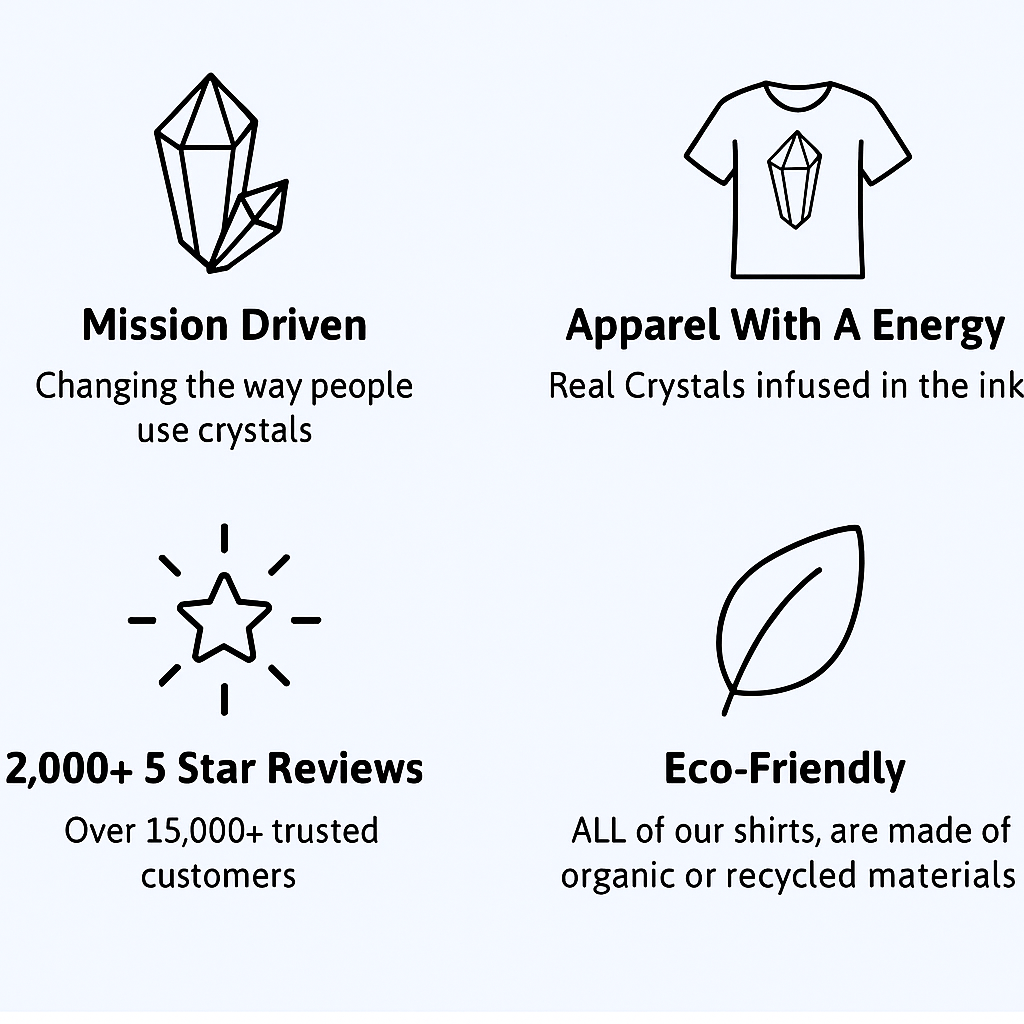Using a very special method we safely convert crystals to a power form that's mixed directly into our high quality ink. each design has its own crystals based on the designs energy