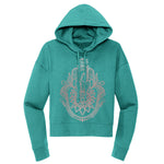 Crystal Hamsa Womans Midweight Crop hoodie infused with Obsidian