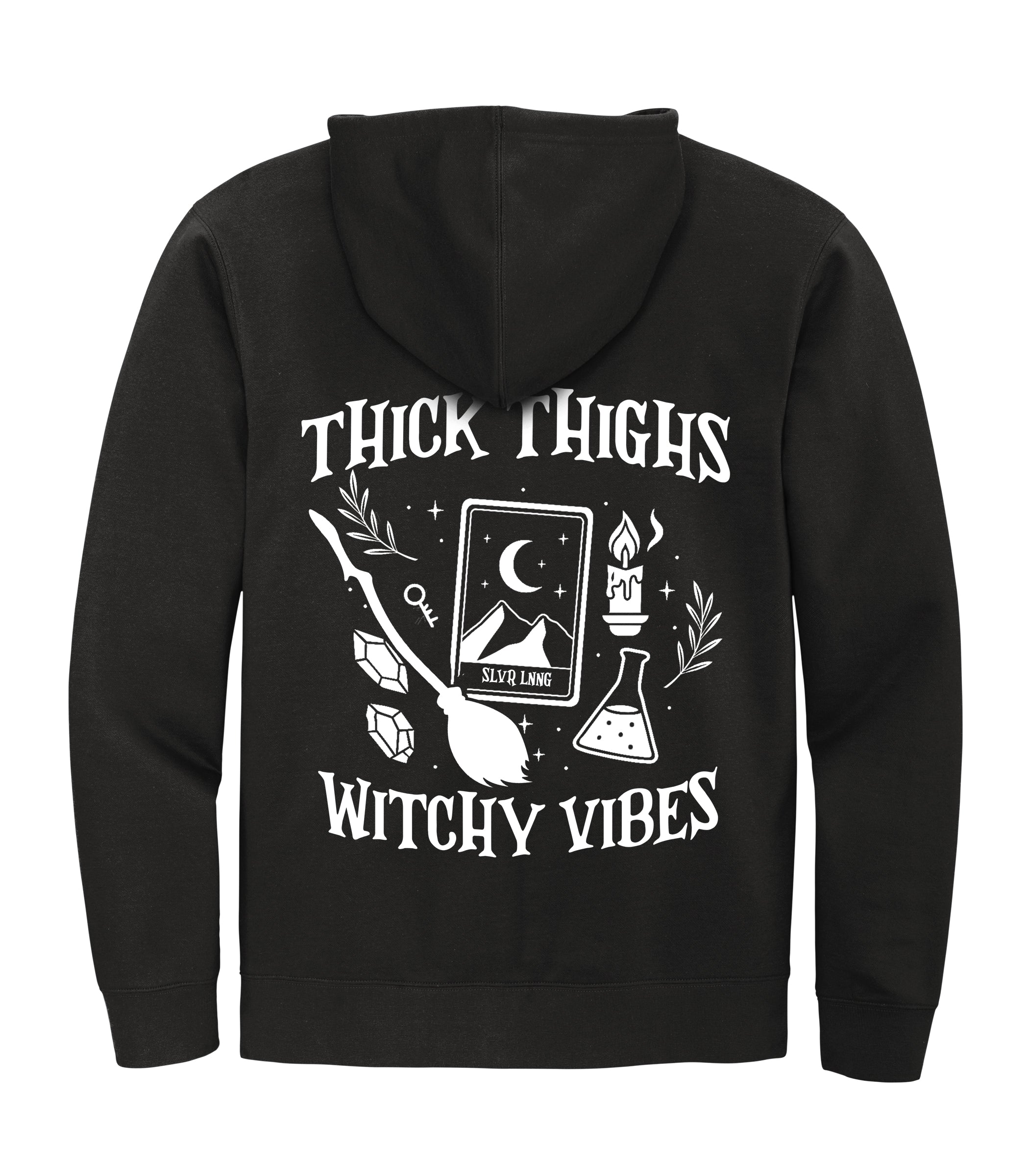 Thick Thighs Witchy Vibes Midweight Zip-up Hoodie Infused with Tourmaline
